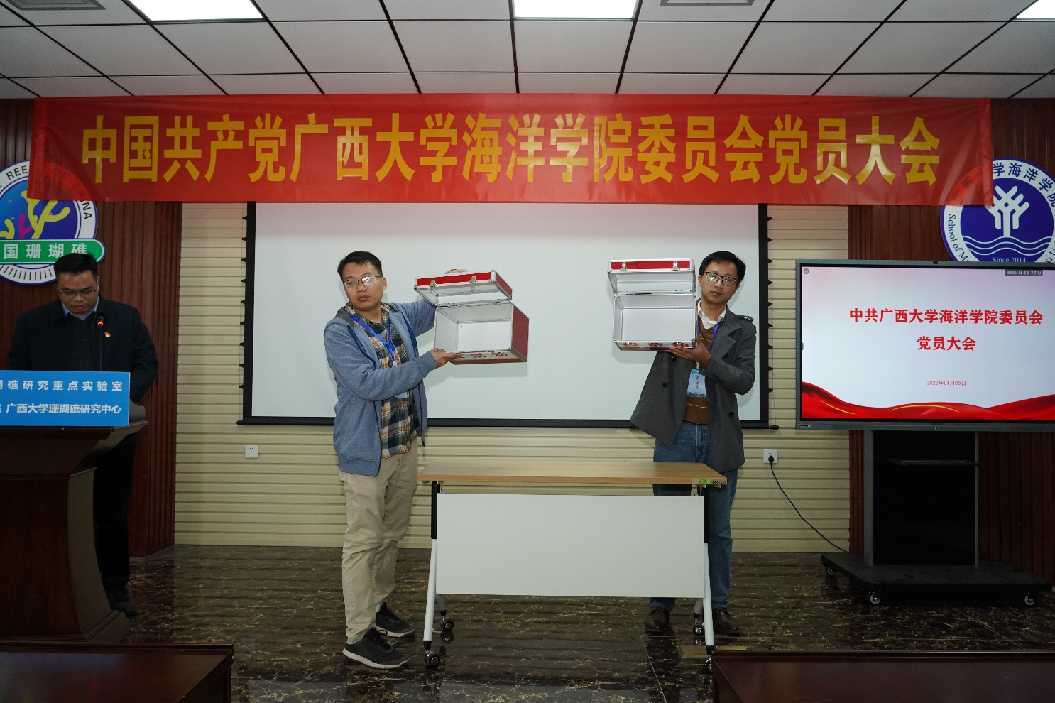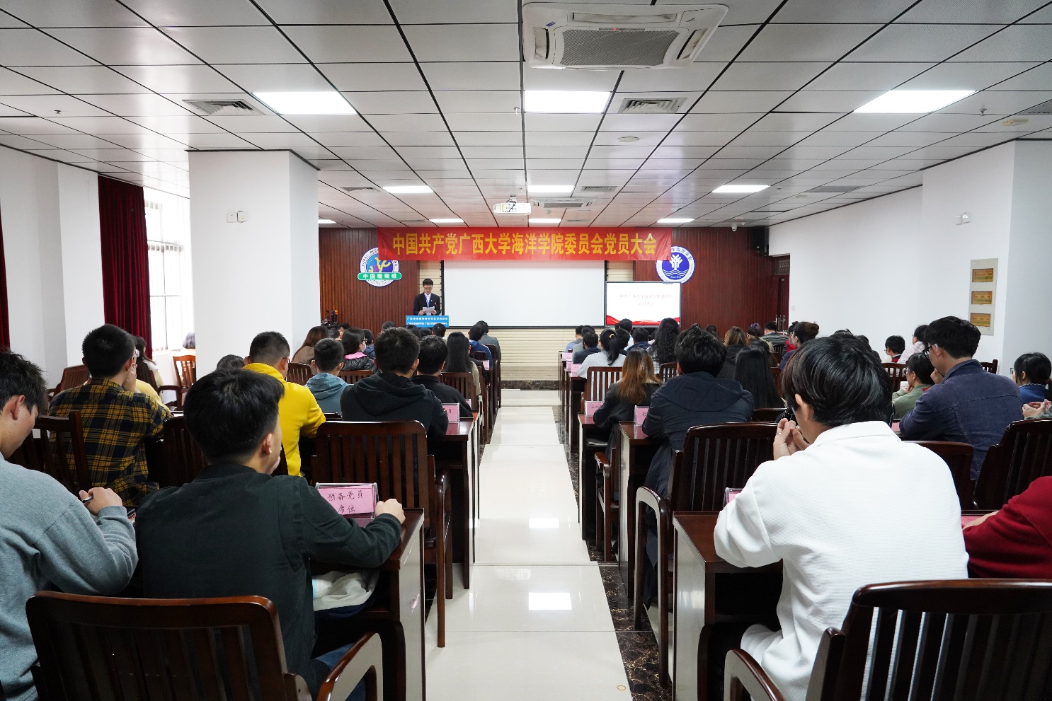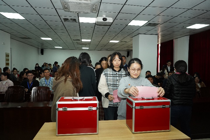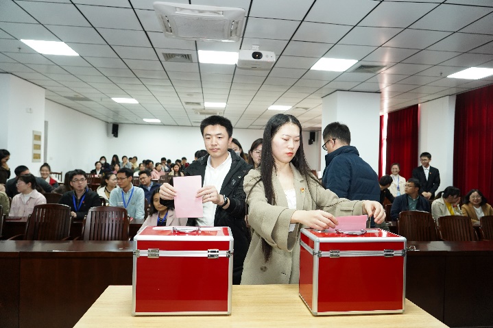 本次大会应到有选举权的正式党员67名,因病、因事请假3名,实到会正式党员64名,符合规定人数。大会先以举手表决的方式通过了《大会选举办法》和总监票人、监票人名单,然后酝酿讨论并通过了海洋公司党委委员、纪委委员候选人名单,最后以无记名投票方式差额选举产生了新一届海洋公司党委委员和纪委委员。党委委员分别是朱迅成、林玉华(女,瑶族)、姜伟、梁甲元、谭运阳;纪委委员分别是王瑞、朱迅成、周剑。