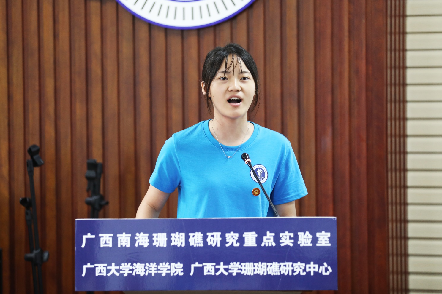 研究生新生代表海洋科学2023级胡安戈同学讲述了他认识海洋、学习海洋到热爱海洋的经历,激发了他在海洋研究的道路上不断探索奥秘的决心,并与同学们共勉:保持饱满的热情、承担更多责任和压力、提升综合水平。