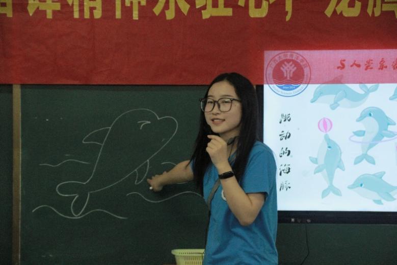 主讲人刘缘在教小朋友们画海豚