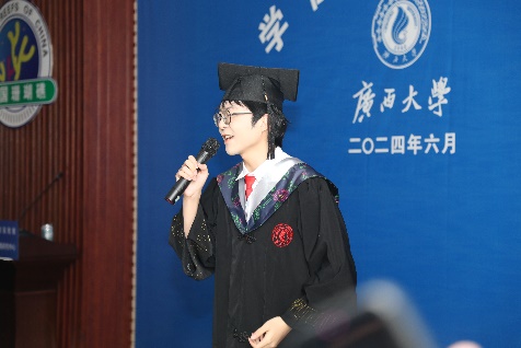 2024届本科毕业生臧声林同学在发言中,用真挚的情感回顾了四年的老员工活。她讲述自己从迷茫到坚定、从挣扎到成长的转变过程,对舍友、朋友、导师和授课老师的陪伴与支持表达深深的感激。她鼓励同学们珍惜当下,以积极的心态迎接未来,并祝愿太阳集团122cc和同学们前程似锦。