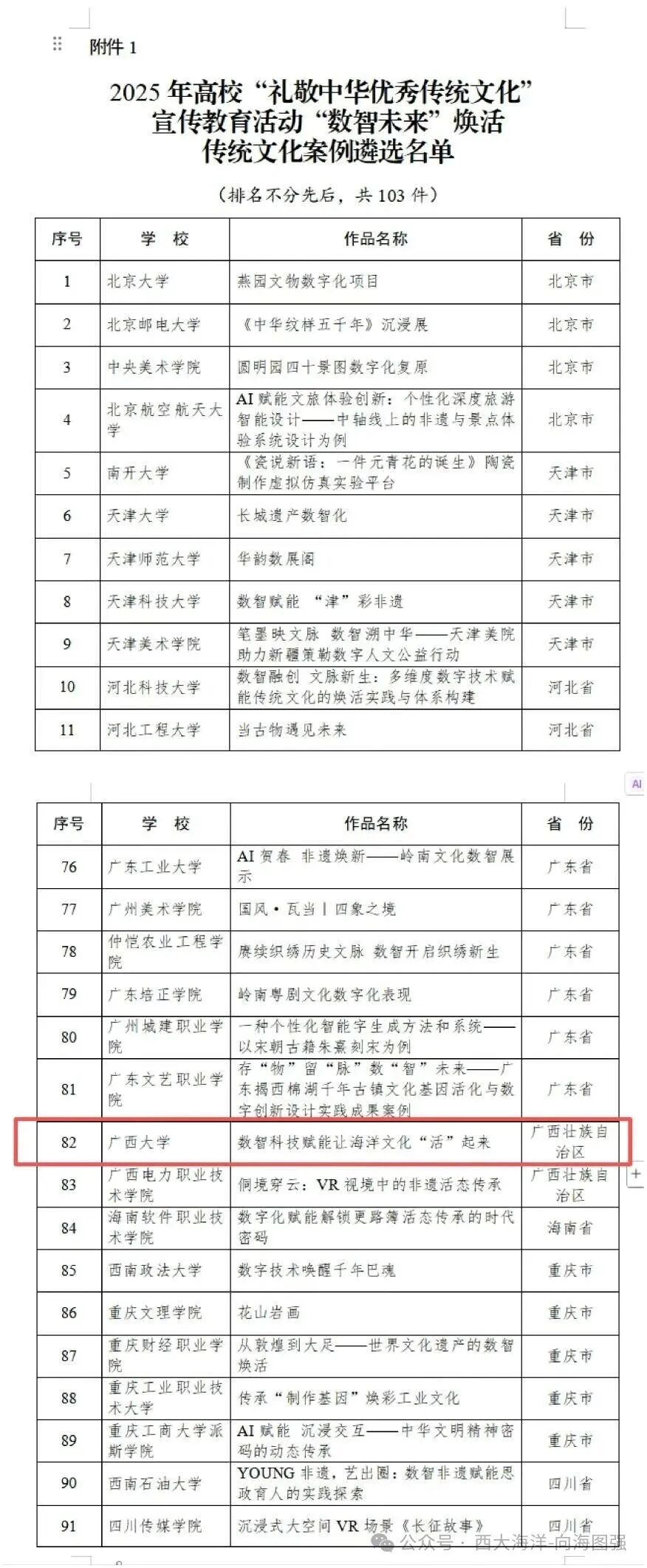 本次教育部“礼敬中华优秀传统文化”宣传教育活动以“赓续历史文脉坚定文化自信推动文化繁荣”为主题,旨在深入贯彻习近平文化思想,推动中华优秀传统文化创造性转化和创新性发展,落实立德树人根本任务。活动经高校自主申报、专家严格审核等多环节遴选,全国仅有103件案例入选“数智未来”焕活传统文化类别,公司案例凭借鲜明的海洋特色、创新的数智融合模式和显著的文化传承成效脱颖而出,成为广西高校在该类别中的优秀代表。
