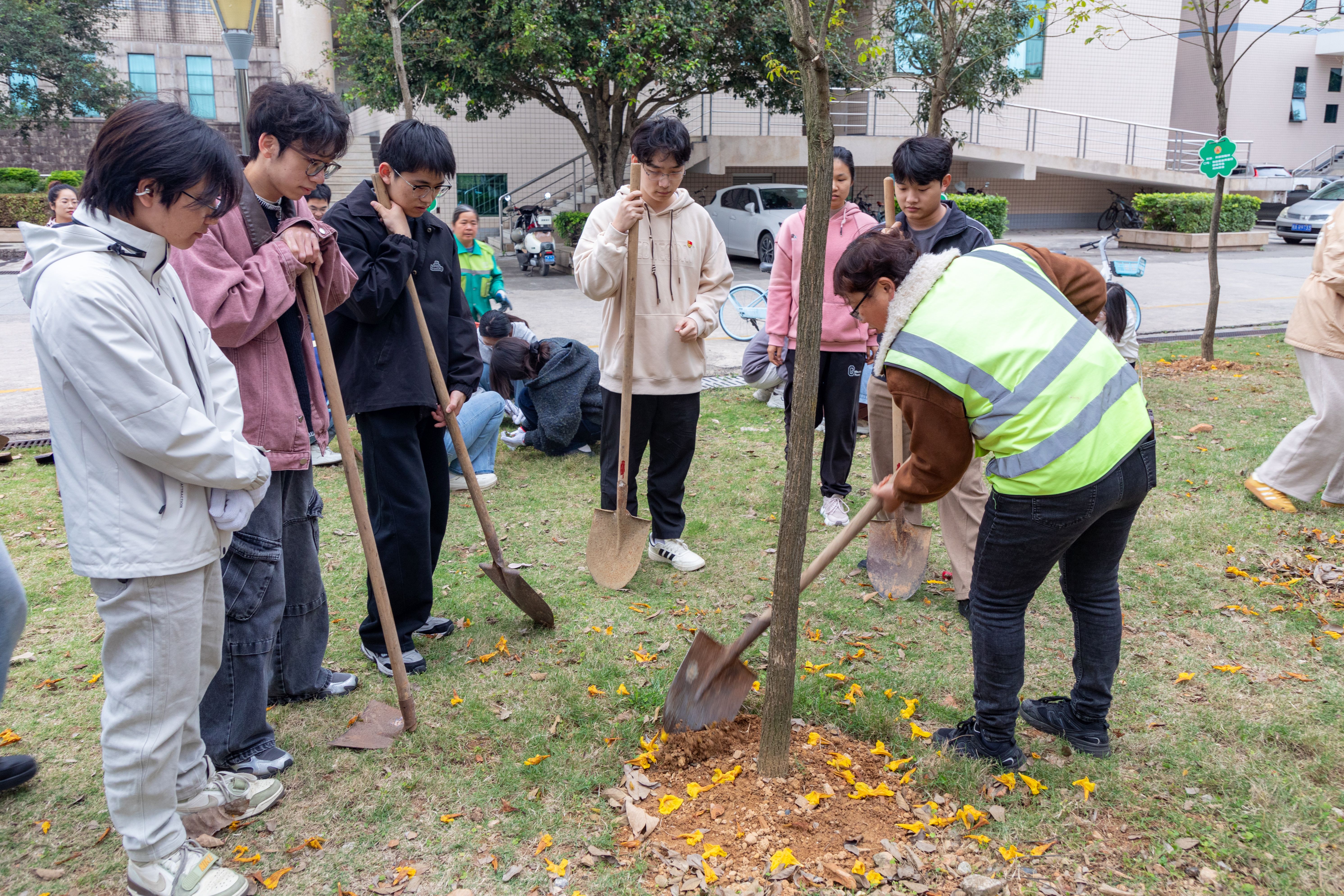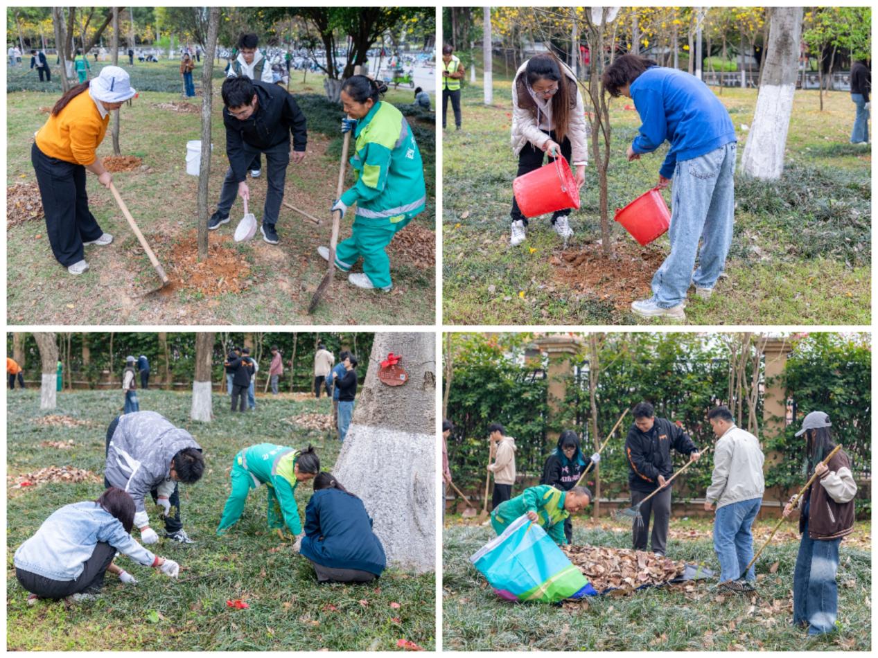此次养护的黄花风铃木,是公司两年前携手相关单位共同栽种,如今公司已连续两年组织党员开展专项养护行动,让植绿护绿成为常态化行动。活动现场,博世科太阳集团122cc物业服务中心老师进行专业指导,全体党员合理分工、协同作战,共分为四组有序开展养护工作:清除落叶组细致清理林间枯枝败叶,松土组深耕土壤改善根系生长环境,施肥淋水组精准把控用量为树木补给养分;拔草组彻底清除杂草避免养分争夺。大家干劲十足、配合默契,劳动场面热火朝天,经过一番忙碌,这片黄花风铃木片区焕然一新,树木长势愈发挺拔,树下草地也变得干净清爽,为校园增添了盎然生机。