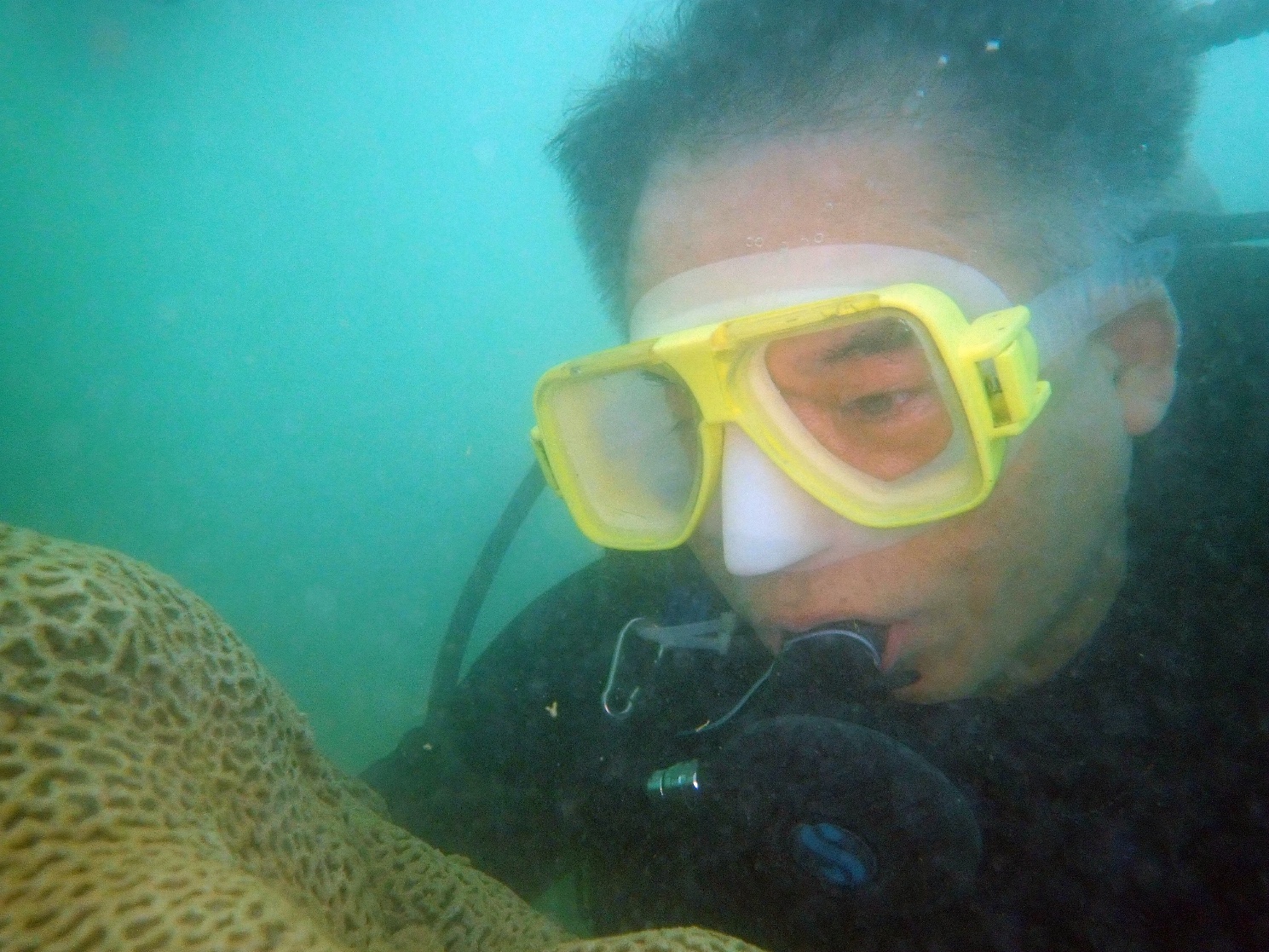焦念志院士潜水考察广西南海珊瑚礁研究重点实验室位于涠洲岛的珊瑚苗圃