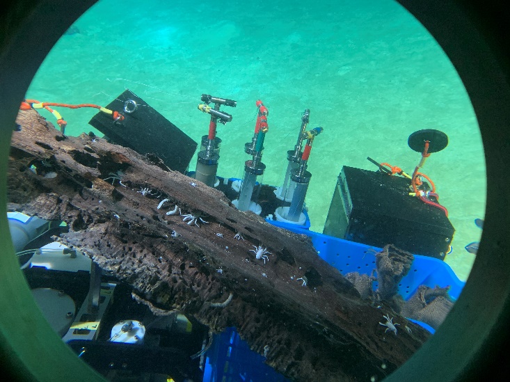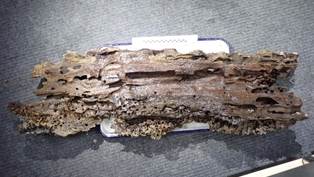 SY420潜次所发现的深海沉木(深度:2321.6m;长:125cm;宽:38cm;高:14cm)