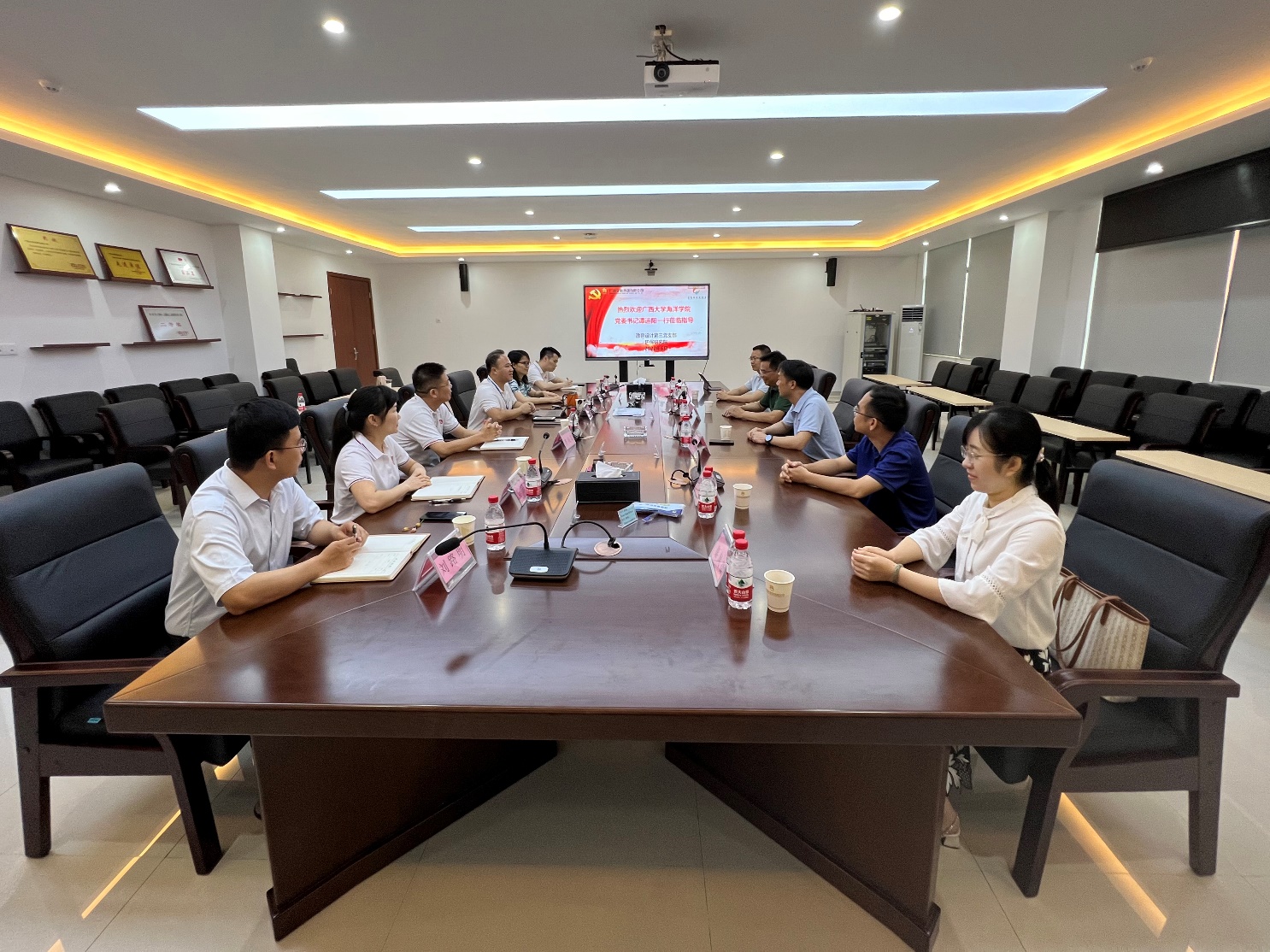 本次调研交流推进了校企合作的可能,以此推动建设优势互补、资源共享的科研平台和人才高地。广西交科集团公司环保研究院副经理吴雪娟、李向阳、黄锐、陈宗娟、刘路明,公司党委副书记朱迅成、海洋遥感及物理海洋教研室主任黄荣永、环境与化学教研室主任宁志铭、团委书记秦凤微、团委副书记周剑等参加考察交流。(周剑/图、文 周剑/编辑 朱迅成/审核)