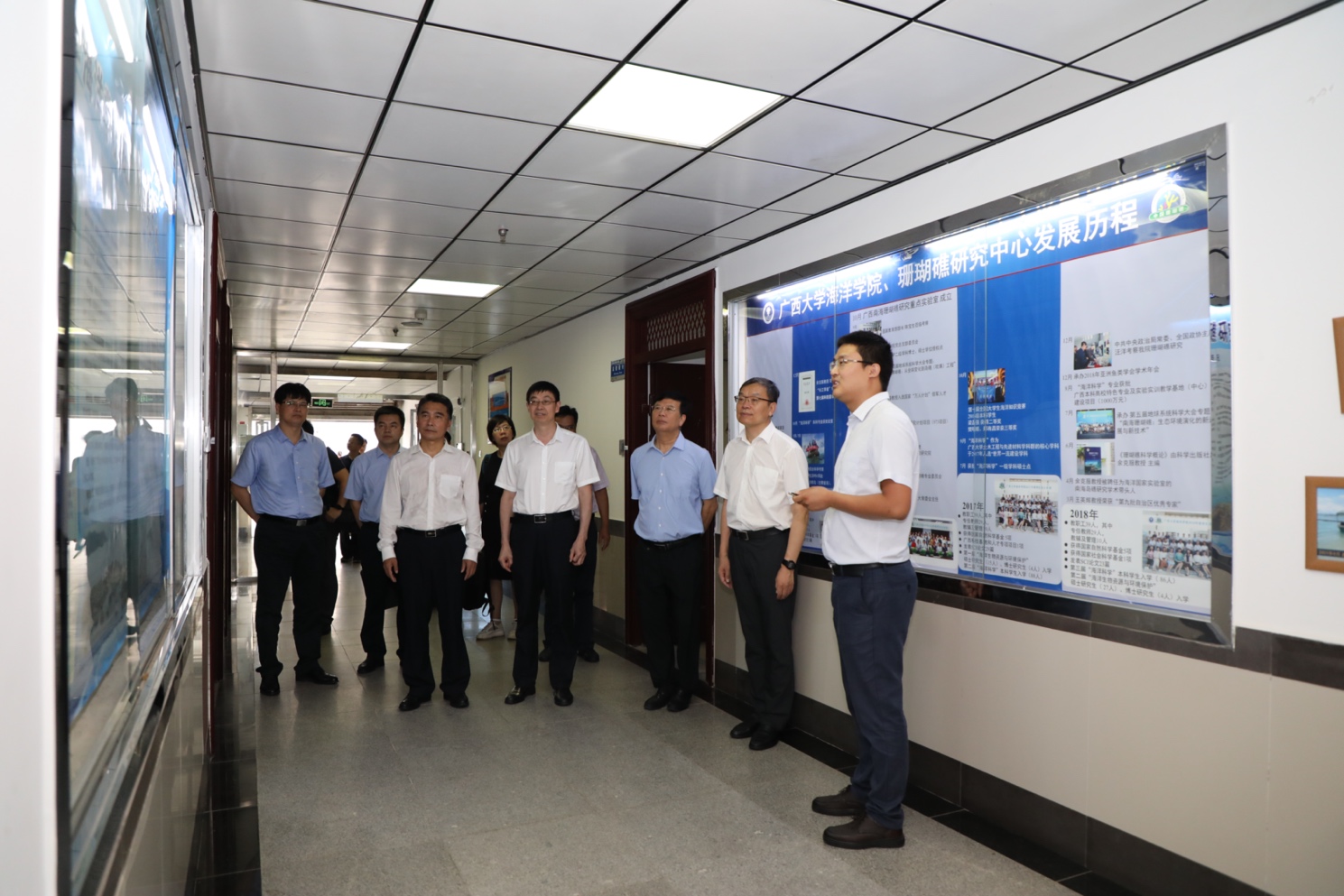 自然资源部第四海洋研究所党委书记、副所长陈维,副所长徐兴永,人事处负责人李利,国际合作处处长王鹏斌,科技处负责人关瑶,广西大公司党委常委、副董事长罗廷荣,海洋公司党委副书记朱迅成,海洋地质与环境教研室主任王瑞等陪同考察交流。(周剑/文、图 周剑/编辑 王少鹏/审核)