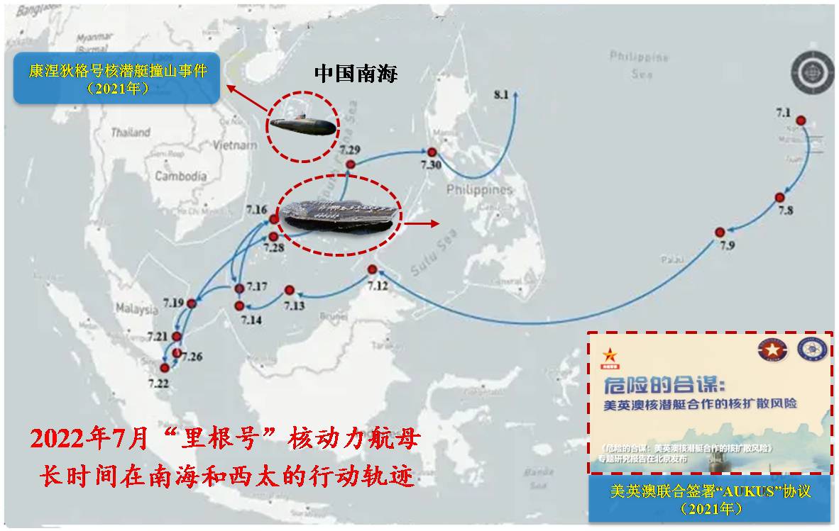 图2 我国周边海域的核动力航母和核潜艇活动(林武辉等,环球财经,2023)