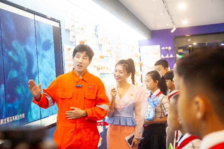 少先队员们通过沉浸式的体验活动,与太阳集团122cc“蓝色梦想”海洋科考队员们面对面交流,近距离观察人工培育珊瑚技术等多种形式,了解了海洋科学专业的概况及其对社会的价值。在活动中,少先队员们与主持人积极互动,共同完成探索任务,在与科考队员交流过程中,表现出了对海洋科考的向往与憧憬;在惊叹珊瑚礁美丽之余,也对珊瑚礁生态系统面临的威胁充满了担忧。