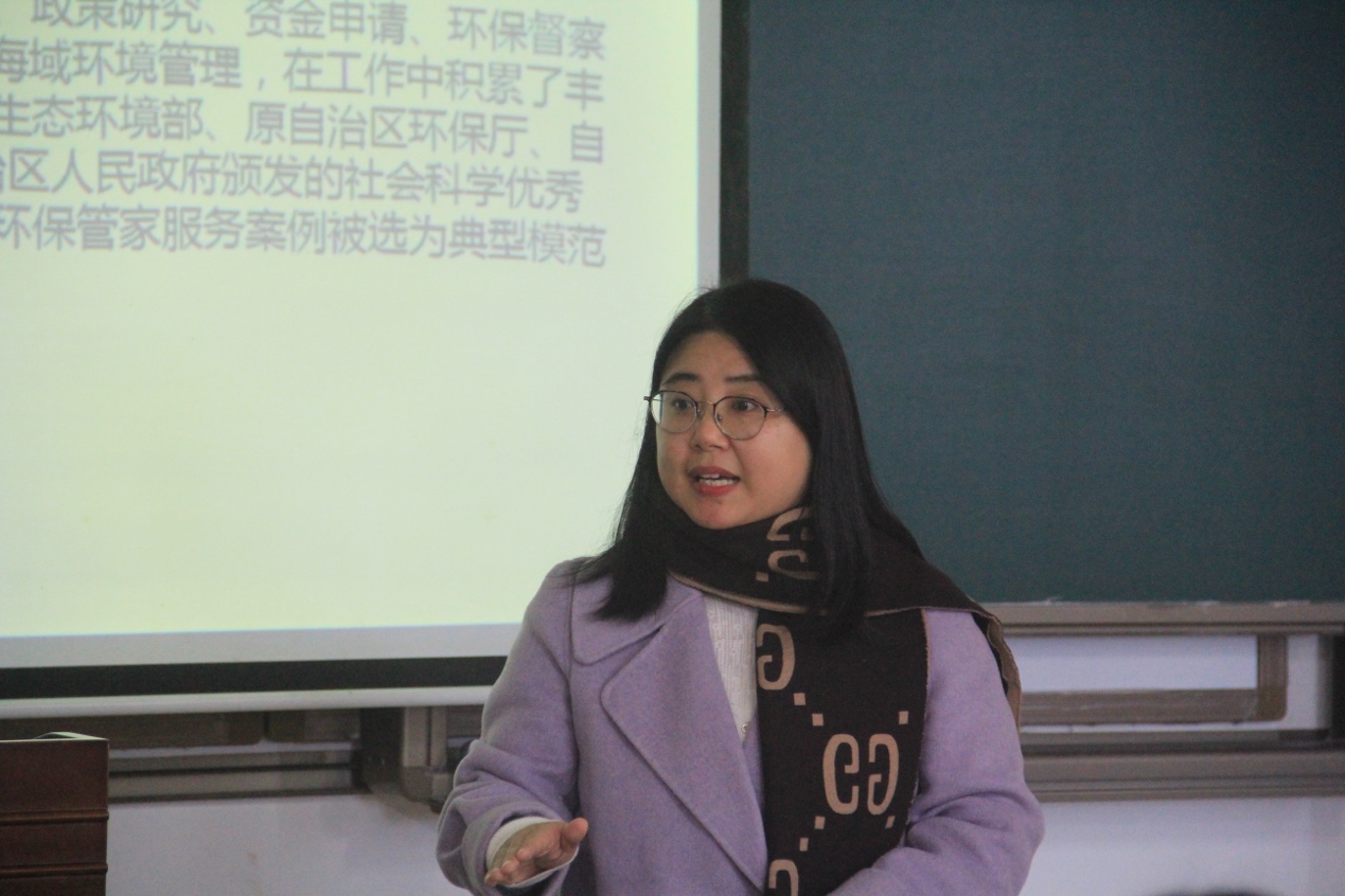2023年12月20日下午,受海洋环境与化学教研室主任宁志铭博士邀请,广西博宇生态环境有限公司(以下简称“博宇公司”)副总经理、正高级工程师谢鸿作为客座讲师为公司本科员工开展《海洋环境影响评价》专题课程,为本科生们带来环境影响评价行业最新发展趋势专题内容。博宇公司总经理邓杰应邀出席并共同完成授课和交流。