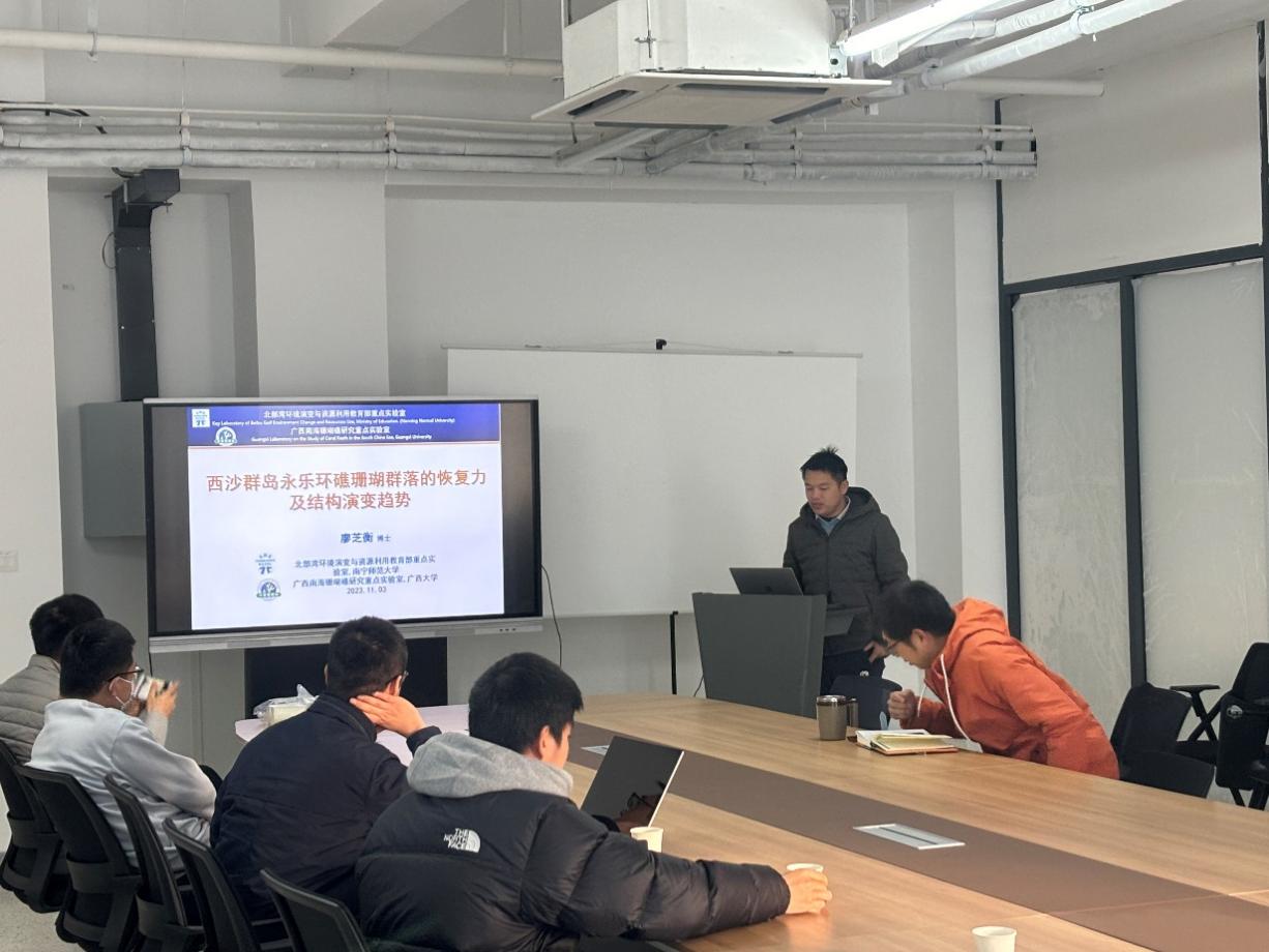 客座研究员廖芝衡博士作“西沙群岛永乐环礁珊瑚群落的恢复力及结构演变趋势”学术报告
