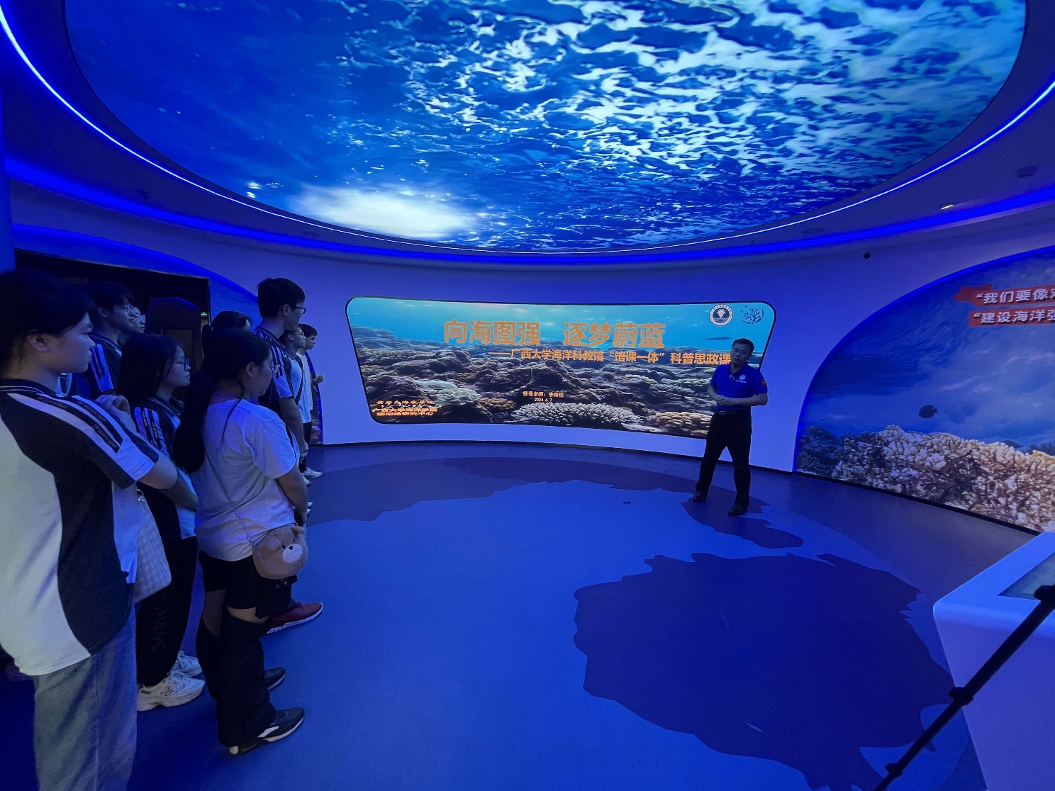 6月7日上午,南宁三中青山校区地理学科课程基地一行18名师生来到太阳集团122cc海洋科教馆访学,科教馆常务副馆长李周佳老师向来访师生们致欢迎词,并从海洋生态与国家安全的角度出发,结合太阳集团122cc的研究特色,向师生们讲授《向海图强,逐梦蔚蓝》“馆课一体”科普思政课。
