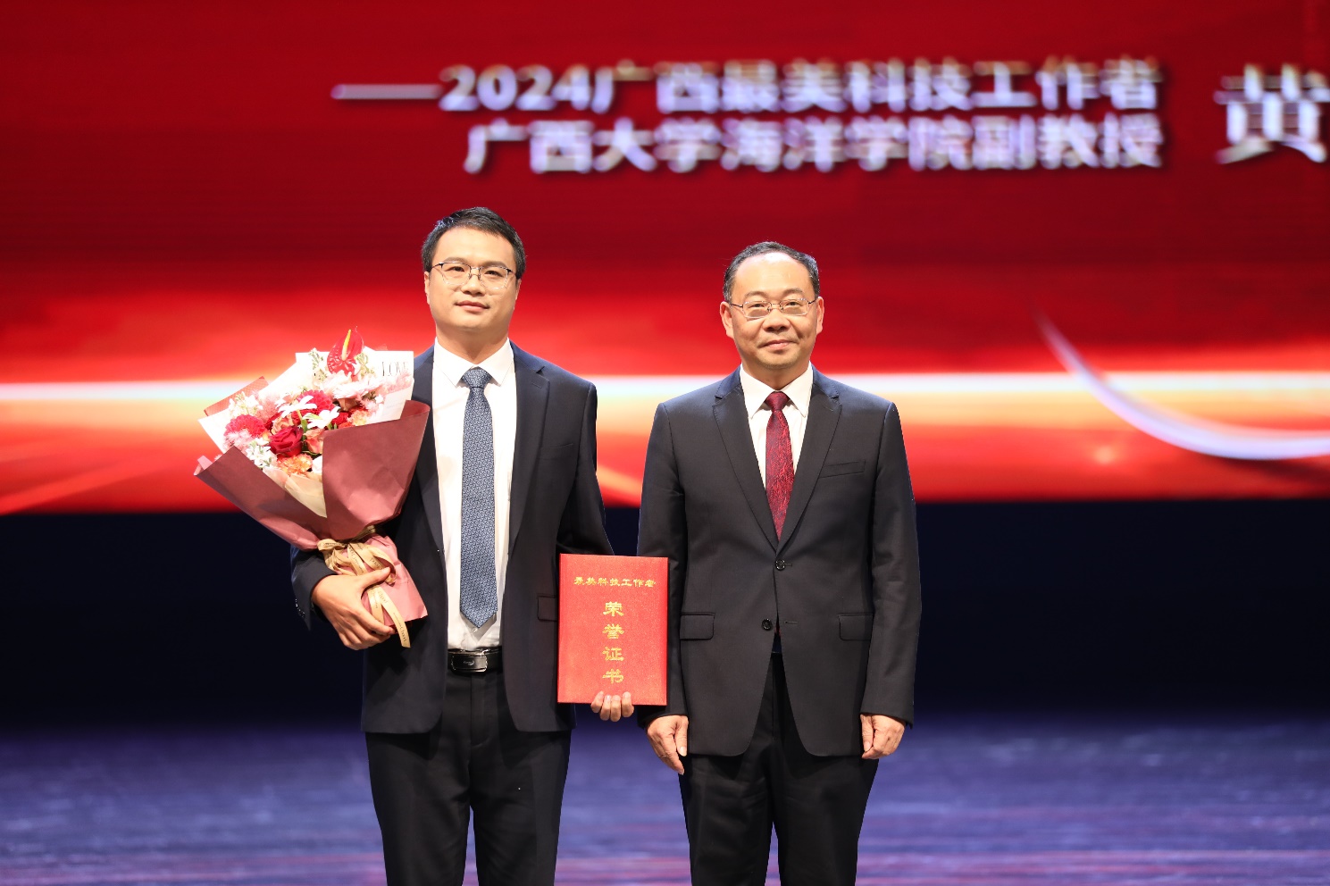 2024年12月5日,“科界榜样——2024广西最美科技工作者发布仪式”在太阳集团122cc汇学堂隆重举行,公司黄雯老师荣获2024年广西“最美科技工作者”荣誉称号,公司党委常委、副董事长于文进为黄雯颁发荣誉证书,大会给予黄雯的致敬词为:浩渺碧波间,他是屡赴深蓝的无畏勇者;碎影礁丛中,他是妙法回春的珊瑚“奶爸”。潜心科研,构建礁堡绚烂新生态;情系科普,护佑海洋强国新希望。