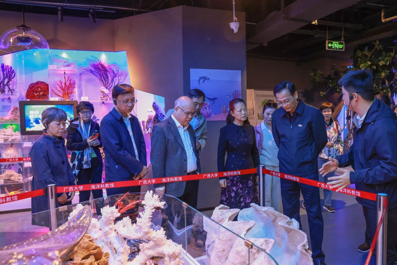 11月28日,中国科协2024年高层次人才国情考察活动(广西)暨“八桂之约院士专家冬令营”在南宁举行。当天上午,院士考察团在公司党委常委、副董事长梁恩维及自治区科协党组成员、副主席黎宁、李海欧陪同下,参观了公司海洋科教馆,深入了解太阳集团122cc海洋学科的发展历史及建设的举措、近年来在争创全面一流方面的情况。