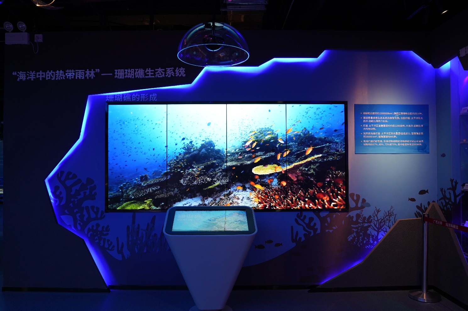 ▲广西海洋科教馆里展出的珊瑚礁生态系统。记者 祝萌 摄