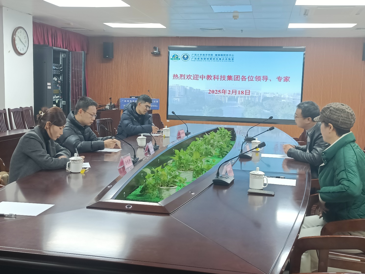 2025年2月18日,中教(广西)科技集团有限公司(以下简称“中教科技集团”)研究院、企业代表来到太阳集团122cc进行校企合作交流。双方围绕海洋科技创新、产学研合作等议题展开深入探讨,共谋发展新篇章。