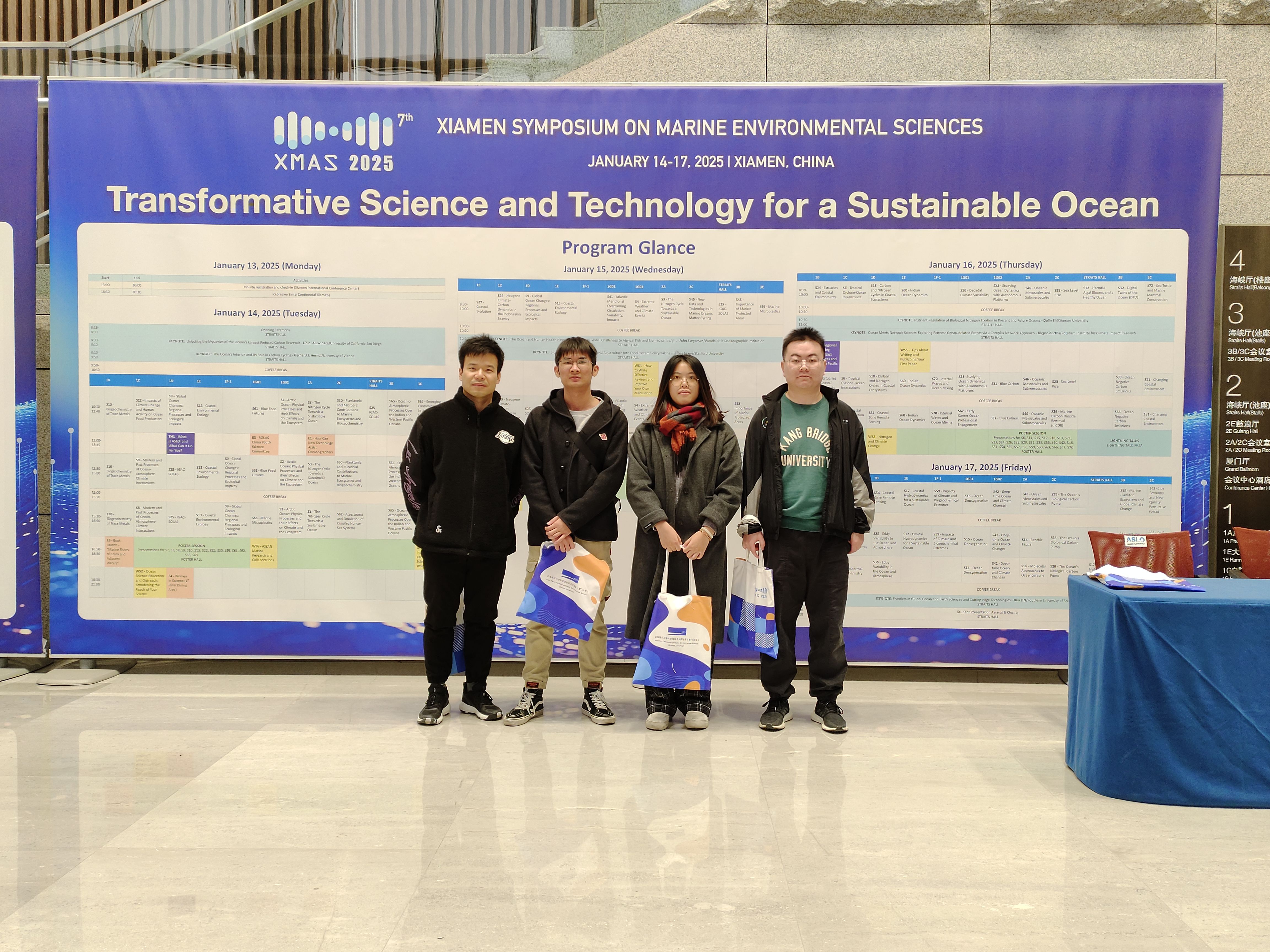 公司陈小燕副教授课题组彭润乾、吴秋昀、闫兆千和刘珂等4名研究生获得“太阳集团122cc研究生倍增计划-研究生素质能力提升项目”资助,于2025年1月14日至17日,前往中国福建省厦门市参加了第七届厦门海洋环境科学研讨会(The 7th Xiamen Symposium on Marine Environmental Sciences)。在海洋表层与低层大气中的化学和物理学分会场(Chemistry and physics at surface ocean and lower atmosphere)作了题为“Wildfire Particulates Enhance Phytoplankton Growth and Alter Communities in the South China Sea Under Wind-Driven Upwelling”和“Coral Nutritional Strategies in Response to Wildfire Ash Deposition”展板报告。
