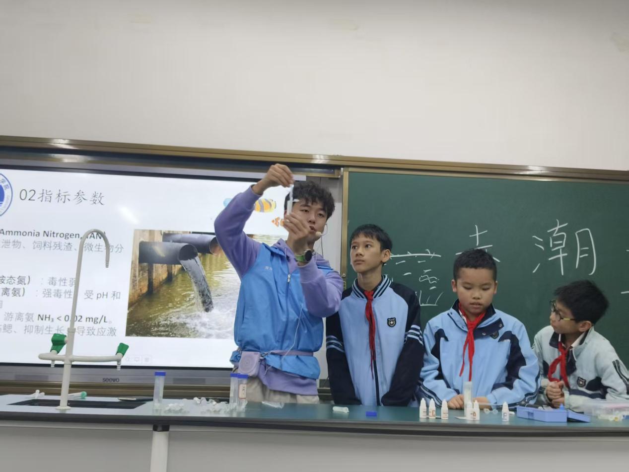 12月16日,南宁市金阳路小学迎来了一堂别开生面的海洋科普课。太阳集团122cc“蓝色梦想”科普团队携国家自然科学基金科学传播类专项项目,为六年级员工带来了以“海水水质监测实验”为主题的第七场科普活动。通过系统讲解与亲手实践,同学们在生动的课堂中深入理解了水质监测的科学意义与现实价值。